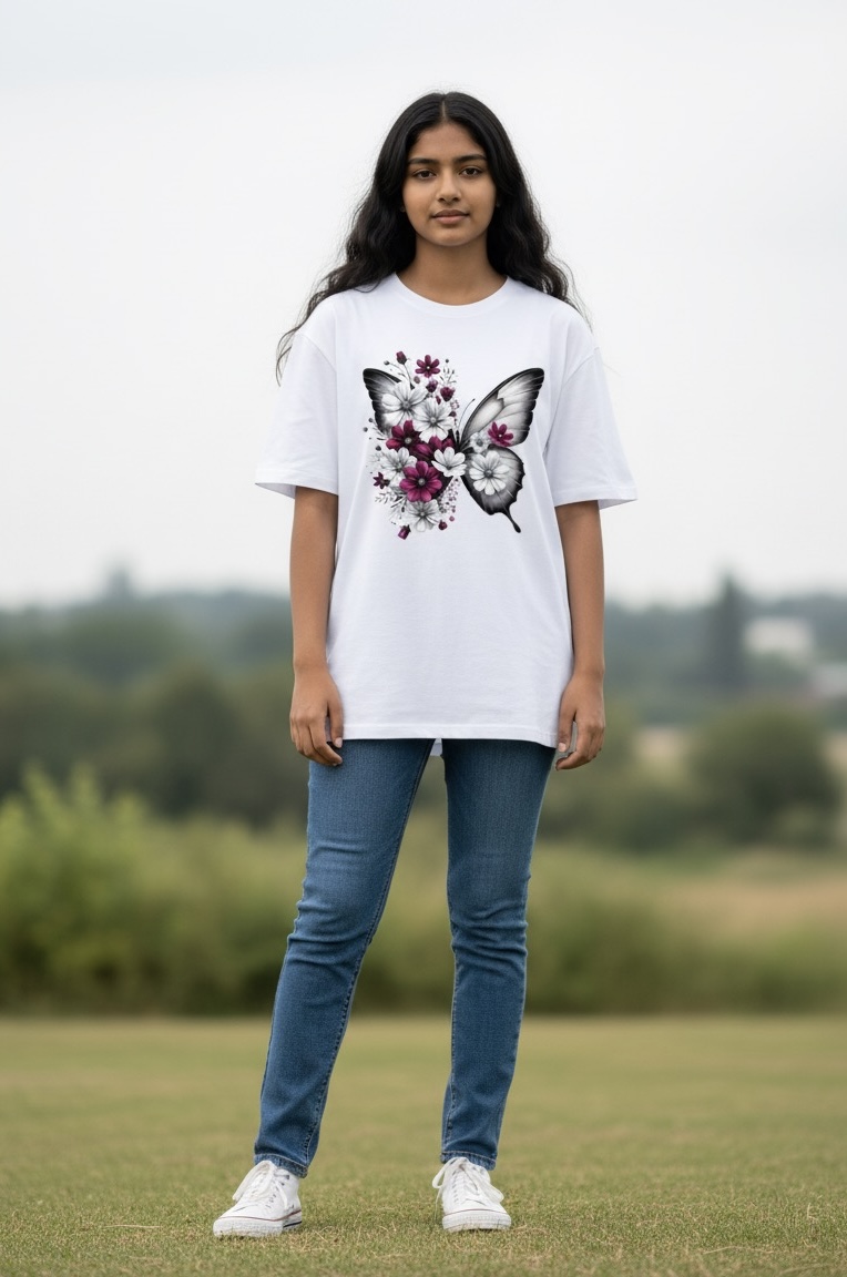 Dream Weaver: Women’s Oversized Butterfly Graphic T-Shirt